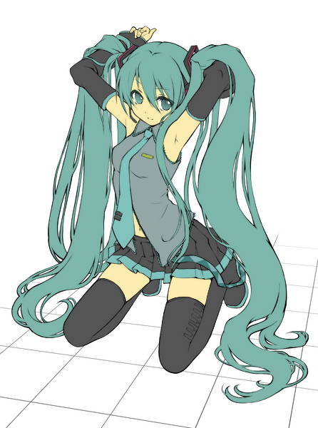 とりあえず今は休憩がてら、pixivから線画を頂戴させて頂きましたミクを塗っております