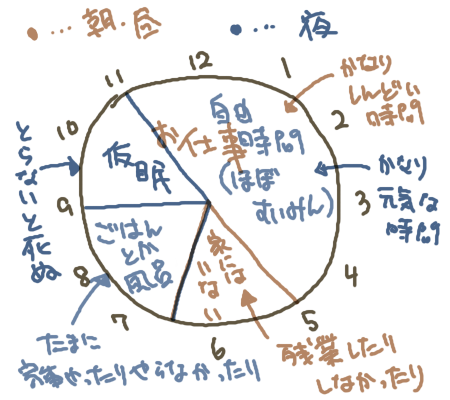 私の行動時間は基本的に夜中です